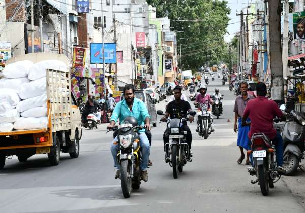 திருப்பூர், மேட்டுப்பாளையம் ரோட்டில் ஒருவழிப் பாதையில் செல்லும் வாகன ஓட்டிகள்.
