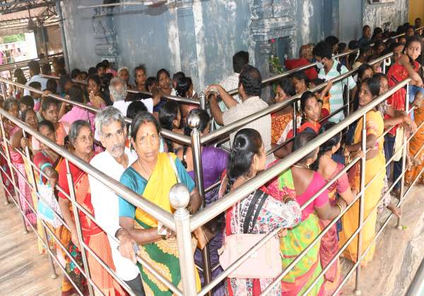 திருவள்ளூர் அடுத்த புட்லூர் அங்காள பரமேஸ்வரி கோவிலில் ஆடி மூன்றாவது வெள்ளியை முன்னிட்டு நீண்ட வரிசையில் நின்று அம்மனை தரிசனம் செய்தனர்