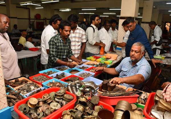 சென்னை நாணயவியல் அமைப்பு சார்பில் , தேசிய அளவிலான வரலாற்று முக்கியத்துவம் வாய்ந்த சங்ககால தமிழ் நாணயங்கள், பணத்தாள்கள், தபால் தலைகள் மற்றும் கலைப் பொருட்களின் மூன்று நாள் கண்காட்சி நேற்று துவங்கியது. அதை ஆர்வமுடன் பார்வையிடும் பொதுமக்கள். இடம் : விருகம்பாக்கம், சென்னை