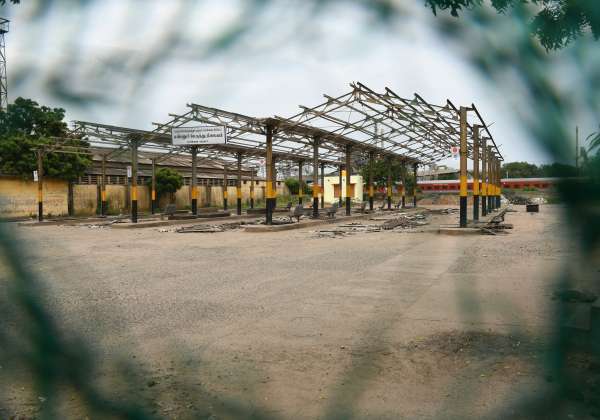 கட்டுமான பணிகளுக்காக, எண்ணுார் பழைய பேருந்து நிலையம் இடித்து அகற்றும் பணி நடக்கிறது.
