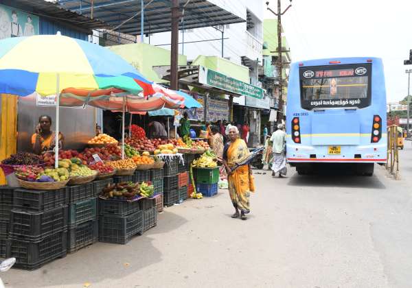 திருவள்ளூர் காமராஜர் சிலை அருகே உள்ள பஸ் நிலையத்தில் பழம் கடைகள் ஆக்கிரமிப்பு செய்ததால் பஸ்கள் வந்து செல்வதற்கு சிரமப்படுகிறது