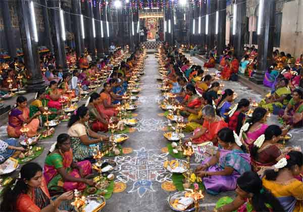திருவண்ணாமலை அருணாசலேஸ்வரர் கோவிலில் ஆடி மாத மூன்றாம் வெள்ளி கிழமையை யொட்டி திருக்கல்யாணம் மண்டபத்தில் நடந்த திருவிளக்கு பூஜையில் ஏராளமான பெண்கள் வழிபட்டனர்