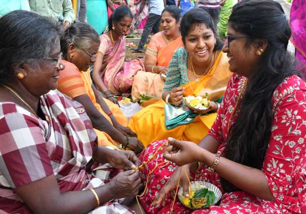 ஆடிப்பெருக்கு முன்னிட்டு புதிதாக திருமணமான பெண்களுக்கான தாலி பெருக்கும் நிகழ்வு கோவைக்கு பேரூர் படித்துறை கன்னிமார் சன்னதியில் நடந்தது.