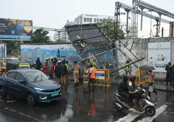 சென்னை மாநகராட்சி ரிப்பன் மாளிகை எதிரே அமைக்கப்பட்டு இருந்த பேனர் காலை திடீரென முறிந்து சாய்ந்தது.