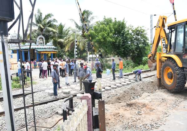 பொள்ளாச்சி வடுகபாளையம் ரயில்வே கேட் மீண்டும் திறப்பதற்காக பணிகள் மேற்கொள்ளப்பட்டன.