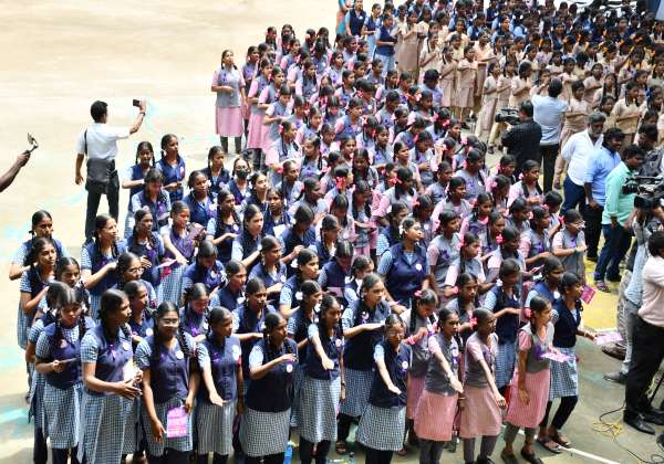 சமூக நலன் மற்றும் மகளிர் உரிமைத் துறை சார்பில், முதியோர்களுக்கு எதிரான கொடுஞ்செயல் எதிர்ப்பு, பெண் குழந்தைகளை காப்போம் மற்றும் பெண் குழந்தைகளை கற்பிப்போம் என்ற விழிப்புணர்வு நிகழ்ச்சி நடந்தது. இதில் உறுதிமொழி ஏற்றுக்கொண்ட மாணவியர். இடம் : சூளைமேடு