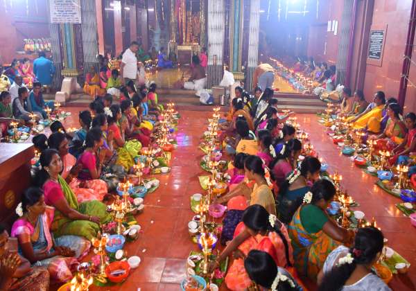 சிவகங்கை அருகே கூத்தாண்டன் மகிஷாசுரமர்த்தினி அம்மன் கோயிலில் ஆடி மாதத்தை முன்னிட்டு விளக்கு பூஜை நடைபெற்றது.
