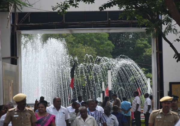 கோவை ரேஸ்கோர்ஸ் பகுதியில் தமிழக முதல்வர் வருகையையொட்டி வாட்டர் பவுண்டேன் பார்வையாளர்களை வெகுவாக கவர்ந்தது.