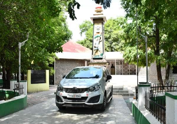 திருப்பூர், குமரன் நினைவிடத்திற்குள் அமைச்சரின் உதவியாளர் காரை நிறுத்திவிட்டு சென்றுள்ளார்.