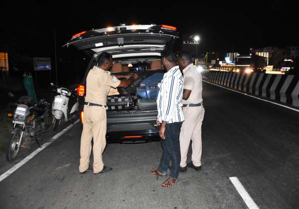 கடலூர் ஆல்ப்பேட்டை செக்போஸ்டில் போலீசார் வாகன சோதனையில் ஈடுபட்டனர்.