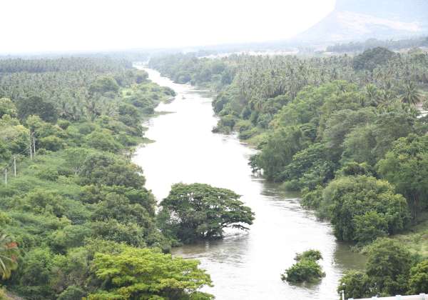உடுமலை அமராவதி அணையிலிருந்து திறந்து விடப்பட்ட தண்ணீர் ஆற்றில் செல்கிறது.