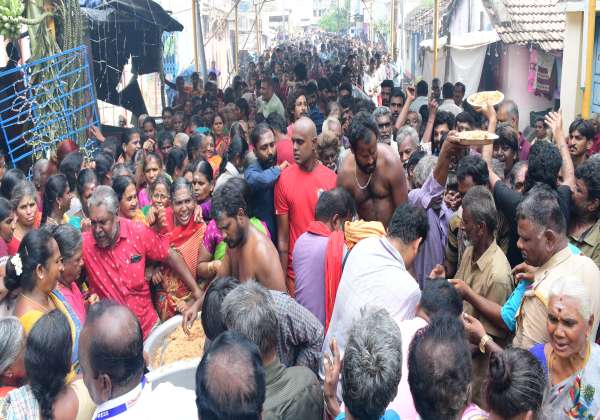 கோவை வைசியா வீதி அருகே 61 அடி வெள்ளை முனியப்பன் சுவாமி திருவுருவ சிலை கண் திறப்பு விழா நடந்தது. இதில் பக்தர்களுக்கு அன்னதானம் வழங்கப்பட்டது.