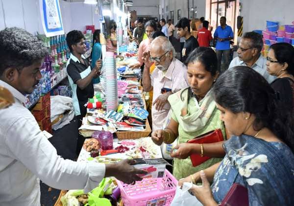 தினமலர் ஸ்மார்ட் ஷாப்பர்ஸ் எக்ஸ்போவில் இடம்பெற்ற வீட்டு உபயோகத்திற்கு தேவையான பொருட்களை வாங்கும் பார்வையாளர்கள். இடம்: கோவை