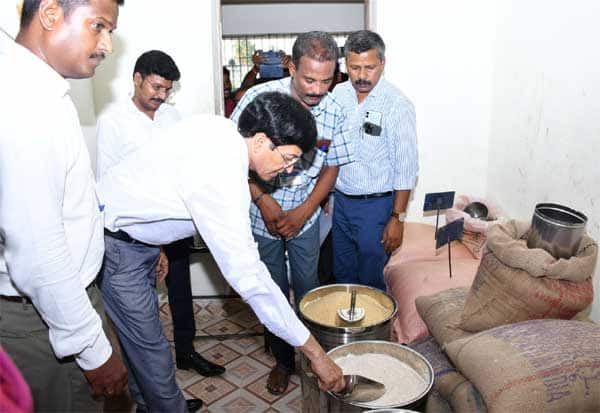 திருவண்ணாமலை ராமலிங்கனார் தெருவில் நியாயவிலைக் கடையை ஆய்வு செய்த கூட்டுறவுத்துறை மற்றும் கூடுதல் தலைமைச் செயலாளர் ராதாகிருஷ்ணன். உடன் டி.ஆர்.ஓ., ராமபிரதீபன் உட்பட பலர்.