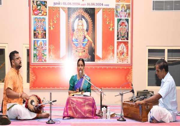 கோவை ராம்நகர் சத்தியமூர்த்தி ரோடு ஶ்ரீ ஐயப்பன் பூஜா சங்கம் அரங்கில் நடந்த பிக் ஷீ கீதா ஹரிகதா ஆன்மீக சொற்பொழிவு நிகழ்ச்சியில் பூர்ணிமா ஶ்ரீகாந்த் பேசினார்.