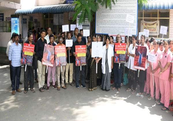 கோல்கட்டாவில் பயிற்சி டாக்டருக்கு ஏற்பட்ட நிகழ்வைக் கண்டித்து இந்திய மருத்துவ சங்கம் மேட்டுப்பாளையம் கிளை சார்பில் அரசு மருத்துவமனை முன்பு ஆர்ப்பாட்டத்தில் ஈடுபட்ட டாக்டர்கள் மற்றும் நர்சுகள்