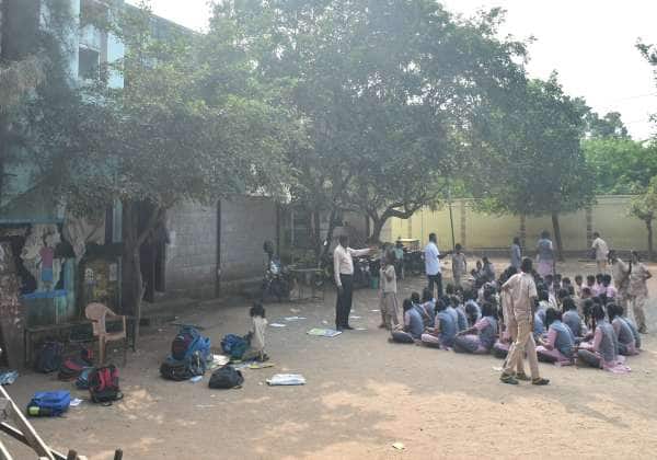 தென்காசி மாவட்டம் கடையம் அருகே முதலியார்பட்டியில் அரசு மேல்நிலைப் பள்ளியில் மாணவ மாணவிகளுக்கு போதுமான வகுப்பறைகள் இல்லாததால் வெட்ட வெளியில் அமர வைக்கப்பட்டுள்ளனர்.