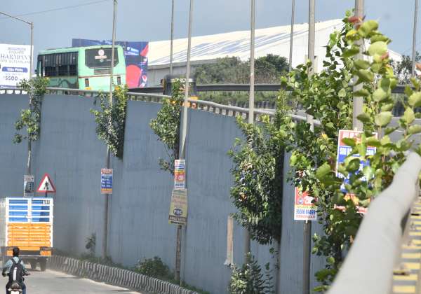 முறையான பராமரிப்பு இல்லாததால் பூந்தமல்லி சென்னீர்குப்பம் மேம்பால சுவர்களில் வளர்ந்துள்ள செடிகள்.