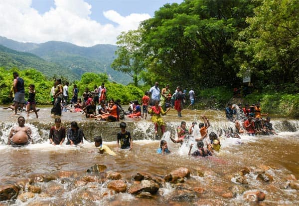 சேலம் கன்னங்குறிச்சி ஏற்காடு அடிவாரப் பகுதியில் உள்ள கற்பக கிராமம் தடுப்பணையில் ஆபத்தை உணராமல் குளிக்கும் பொதுமக்கள்