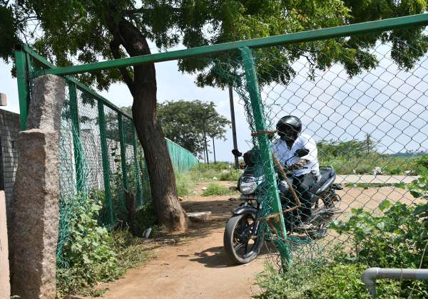 கோவை குறிச்சி குளக்கரையில் அமைக்கப்பட்டுள்ள ஸ்மார்ட் சிட்டி பூங்காவை சுற்றி போடப்பட்டுள்ள இரும்பு வேலியில் ஆங்காங்கே இருசக்கர வாகனங்கள் செல்லும் வகையில் அகற்றப்பட்டுள்ளது.
