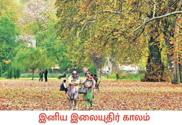 ஜம்மு- காஷ்மீரின் ஸ்ரீநகரில் இலையுதிர் காலம் துவங்கி உள்ளது. மரங்களில் இருந்து உதிர்ந்த செம்மஞ்சள் நிற இலைகள் இடையே நடந்து சென்றவர்களுக்கு அழகிய சூழலை ஏற்படுத்தியது.