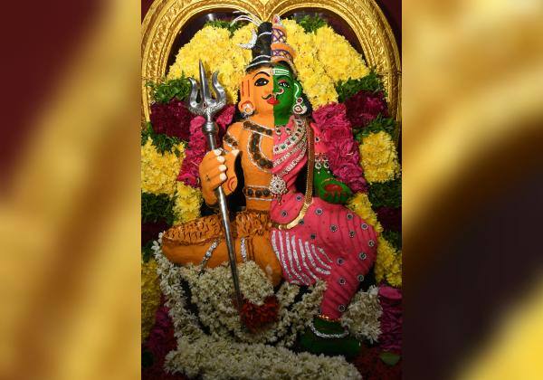 சென்னை மணலியில் உள்ள ஆயிரங்காத்தம்மன்கோவிலில் ஆடி திருவிழாவை முன்னிட்டு அர்த்தநாதீஸ்வரர் அலங்காரத்தில் அருள் பாலித்த அம்மன்.