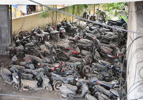 பல்வேறு வழக்குகளில் போலீசாரால் பறிமுதல் செய்யப்பட்ட வாகனங்கள் வெயிலிலும் மழையிலும் வீணாகி வருகிறது. இடம் : வில்லிவாக்கம்