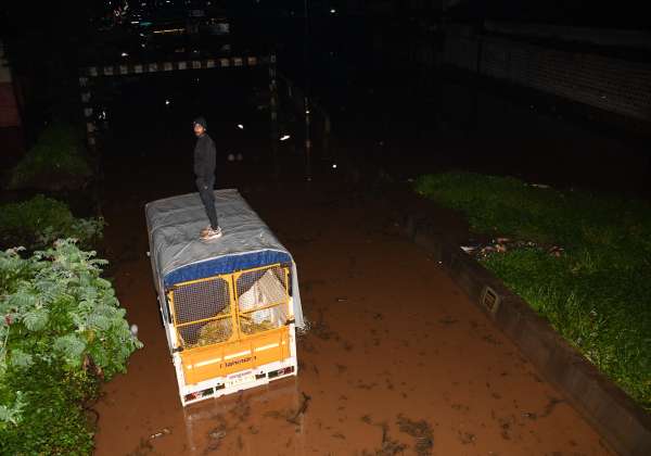 ஊட்டியில், பெய்த கனமழைக்கு படகுஇல்ல சாலையில் தேங்கிய நீரில், வாகனத்தில் சிக்கியவர் , இறங்க முடியாமல் தவித்தார்.