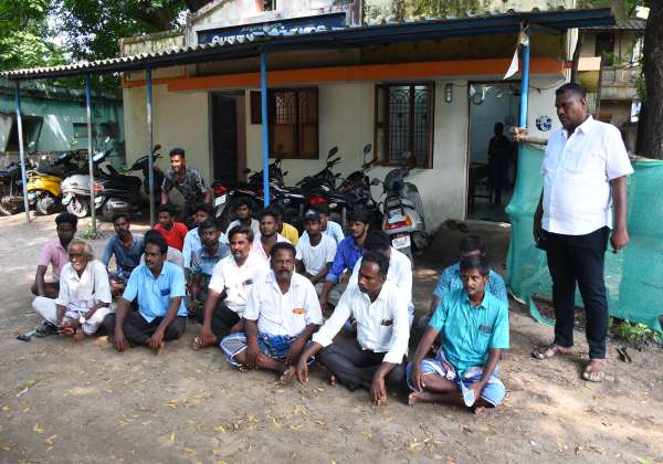 துப்புரவு பணியாளர்கள் சென்னையில் மறியல் போராட்டத்தில் ஈடுபட்டனர். ஈடுபட்டவர்களை போலீசார் கைது செய்தனர். இடம்: மெரினா காமராஜர் சாலை கருணாநிதி நினைவிடம் முன்பு.