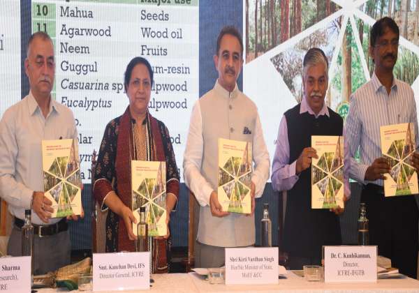 கோவை இ.எஸ்.ஐ., ரோட்டிலுள்ள தனியார் ஓட்டலில் மரங்கள் மேம்பாடு குறித்த தேசிய கருத்தரங்கில், நடந்த புத்தக வெளியீட்டு விழாவில் வெளியுறவு துறை இணையமைச்சர் கீர்த்தி வர்தன் சிங் நூலை வெளியிட்டார். அருகில் இந்திய வன ஆராய்ச்சி மற்றும் கல்வி கழக நிர்வாக இயக்குனர் காஞ்சன் தேவி, கோவை வன மரபியல் மற்றும் மரப்பெருக்கு நிறுவன இயக்குனர் குஞ்சிக்கண்ணன் உள்ளிட்டோர்.