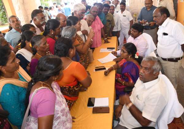 கோவை மாநகராட்சியில் நடந்த குறைதீர்ப்பு கூட்டத்தில் பொதுமக்களிடம் குறைகளை கேட்ட மேயர் ரங்க நாயகி மற்றும் ஆணையாளர் சிவகுரு பிரபாகரன் உள்ளிட்டோர்.
