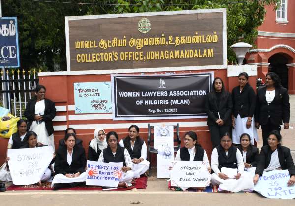 ஊட்டி கலெக்டர் அலுவலகம் முன்பு, நீலகிரி மாவட்ட பெண் வக்கில்கள் சங்கத்தினர், கோல்கட்டா பயிற்சி பெண் டாக்டர் கொலைக்கு கண்டனம் தெரிவித்து ஆர்ப்பாட்டம் நடத்தினர்.