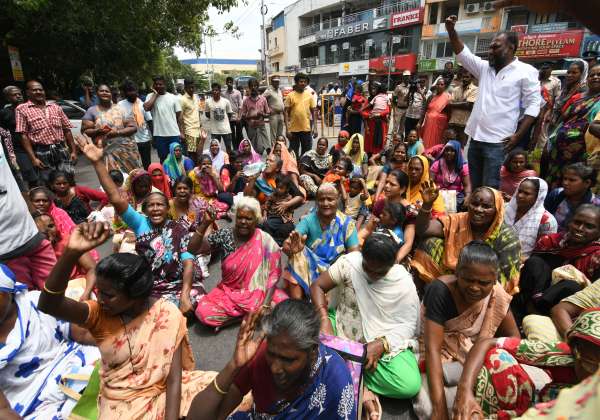 சென்னை கண்ணப்பர் திடல் மக்கள் வீடு கேட்டு சாலை மறியலில் ஈடுபட்டனர். இடம்:சூளை.
