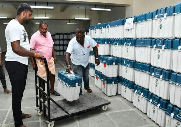 திருப்பூர், கலெக்டர் அலுவலகம் அருகே உள்ள ஸ்ட்ராங் ரூமிலிருந்து பழுதான ஓட்டுபதிவு இயந்திரங்களை சரி செய்வதற்கு எடுத்து சென்றனர்.