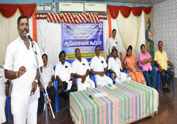 விழுப்புரம் அடுத்த கோலின் ஊரில் நடந்த தமிழ்நாடு கோவில் மனை குடியிருப்போர் நல சங்கத்தின் சார்பில் ஆலோசனைக் கூட்டத்தில் குடியிருப்போர் நல சங்கம் தலைவர் ரமேஷ் பேசினார்.