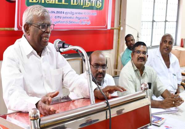 திருப்பூர், மாவட்ட கூட்டுறவு பணியாளர் சங்கத்தின் மாவட்ட மாநாடு நடந்தது. இதில் மாநில தலைவர் கிருஷ்ணமூர்த்தி பேசினார். அருகில் மாவட்ட பொருளாளர் சுரேஷ், செயலாளர் மகேந்திரன், தலைவர் கெளதமன் ஆகியோர் உடனிருந்தனர்.