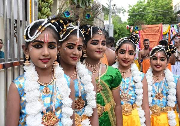 கிருஷ்ண ஜெயந்தியை முன்னிட்டு கோடம்பாக்கம் ஐய்யப்பன கோவில் அருகே இருந்து கிருஷ்ணர், , சீதை வேடமணிந்த சிறுவர்களின் பேரணி நடந்தது.