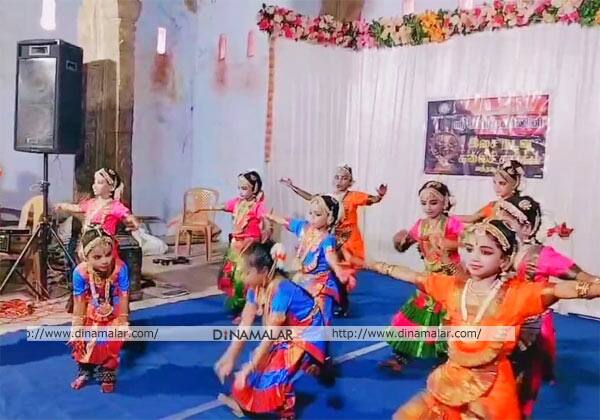 குற்றாலம் சித்திர சபையில் வத்தலகுண்டு ஸ்ரீ அமிர்தவர்ஷினி இசை நடன கலை சங்கத்தின் 50க்கும் மேற்பட்ட குழந்தைகளின் சங்கீத நாட்டிய கலை நிகழ்ச்சி நடந்தது.