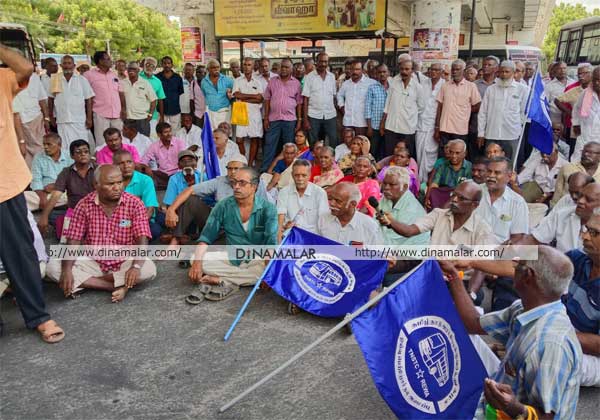 பல்வேறு கோரிக்கைகளை வலியுறுத்தி அரசு போக்குவரத்து ஓய்வு பெற்ற தொழிலாளர்கள் திருநெல்வேலி வண்ணாரப்பேட்டை ரவுண்டானாவில் போராட்டத்தில் ஈடுபட்டனர்.
