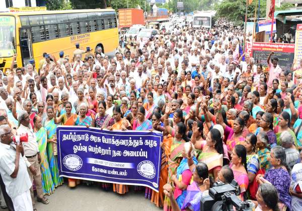 கோவை மேட்டுப்பாளையம் ரோட்டில் உள்ள அரசு போக்குவரத்து கழகம் முன்பு பல்வேறு கோரிக்கைகளை வலியுறுத்தி தமிழ்நாடு அரசு போக்குவரத்து கழக ஓய்வு பெற்றோர் நல அமைப்பு சார்பில் சாலை மறியலில் ஈடுபட்டனர்.