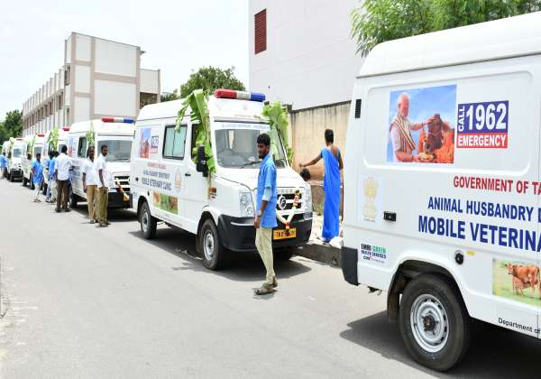 கால்நடை ஆம்புலன்ஸ் வாகனங்கள் திருப்பூர் கலெக்டர் அலுவலகத்தில் பயன்பாட்டிற்கு துவக்கி வைக்கப்பட்டது.