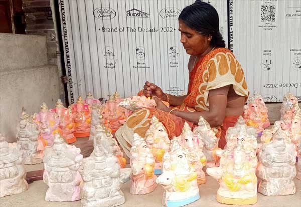 திருவண்ணாமலை அடுத்த மங்களம் பகுதியில் விநாயகர் சதுர்த்தி முன்னிட்டு களிமண் விநாயகர் சிலைக்கு வர்ணம் தீட்டும் பணி மும்முரமாக நடைபெறுகிறது
