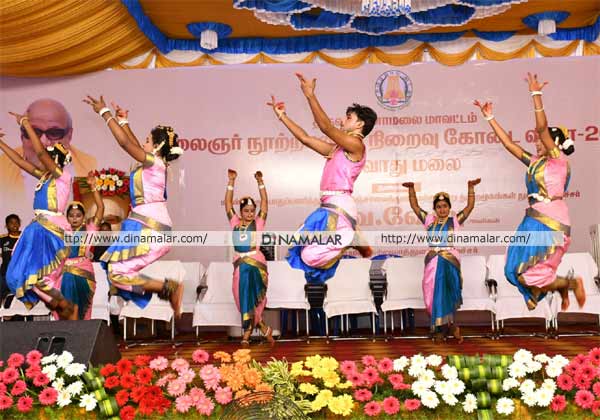 திருவண்ணாமலை மாவட்டம் ஜவ்வாது மலையில் நடந்த கருணாநிதி நூற்றாண்டு நிறைவு விழாவில் தொடர்ந்து ஒரு மணி நேரம் பரதநாட்டியம் ஆடி அசத்திய குழுவினர்.