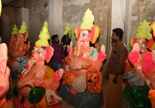 விநாயகர் சதுர்த்தியை யொட்டி தயார்நிலையில் உள்ள விநாயகர் சிலைகளை வாடிக்கையாளர்கள் வாங்க தேர்வு செய்தனர். இடம் முதுநகர் கடலூர்.