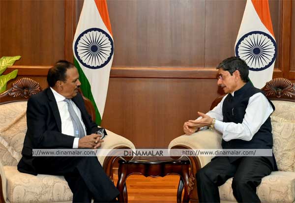 சென்னை வந்த தேசிய பாதுகாப்பு ஆலோசகர் அஜித் தோவல், கவர்னர் ரவியை சந்தித்து பேசினார்.