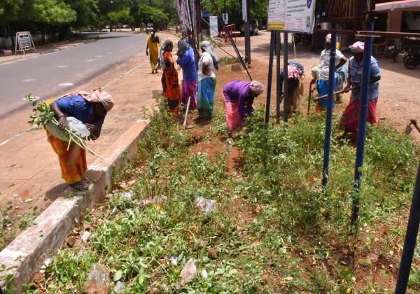 அமைச்சர் உதயநிதி வருகைக்காக சிவகங்கை கலெக்டர் அலுவலக வளாகத்தில் பராமரிப்பு பணி நடந்து வருகிறது.