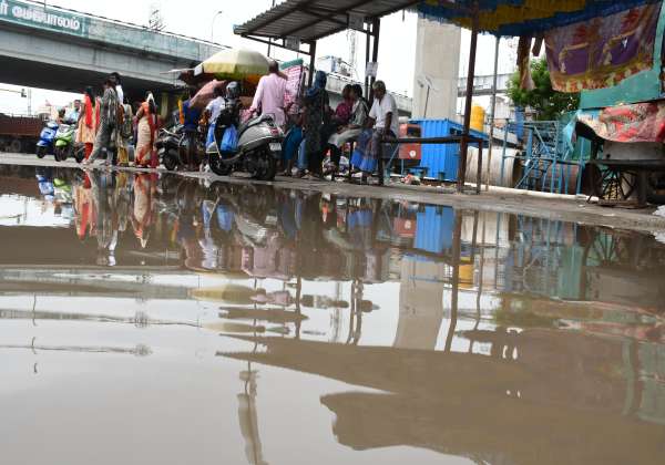 சென்னை, போரூர் ஆற்காடு சாலை பேருந்து நிறுத்தத்தில் தேங்கிய மழை நீரால் பஸ் பயணிகளுக்கு சிரமம்