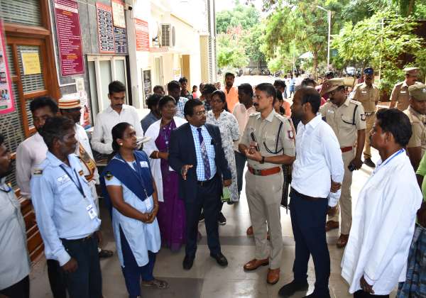 கடலூர் அரசு தலைமை மருத்துவமனையில் கலெக்டர் சிபி ஆதித்யா செந்தில்குமார் ஆய்வு செய்தார்.அருகில் எஸ்.பி., ராஜாராம்