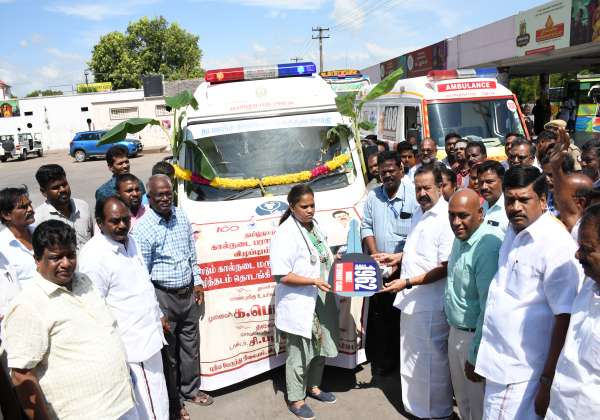விழுப்புரம் புதிய பஸ் நிலையத்தில் நடமாடும் கால்நடை மருத்துவ வாகனத்தை அமைச்சர் பொன்முடி கொடியசைத்து துவக்கி வைத்தார். அருகில் கலெக்டர் பழனி.