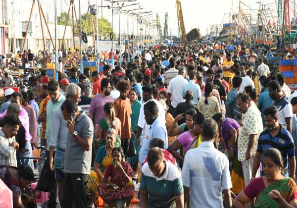 விடுமுறை தினத்தையொட்டி சென்னை காசிமேடு மீன்பிடி துறைமுகத்தில் மீனவர்கள் வாங்க குவிந்த மக்கள் கூட்டம்.